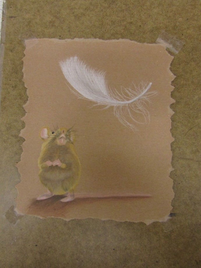 Kerry Shaw, with her colourful dog – Bruce 3rd (£10 cash prize and certificate), Roger Wood came 2nd with his comic seagulls ( £15 cash prize and certificate) and the winner was Sue Brown, withher Mouse and Feather (£20 cash prize, certificate and the trophy).