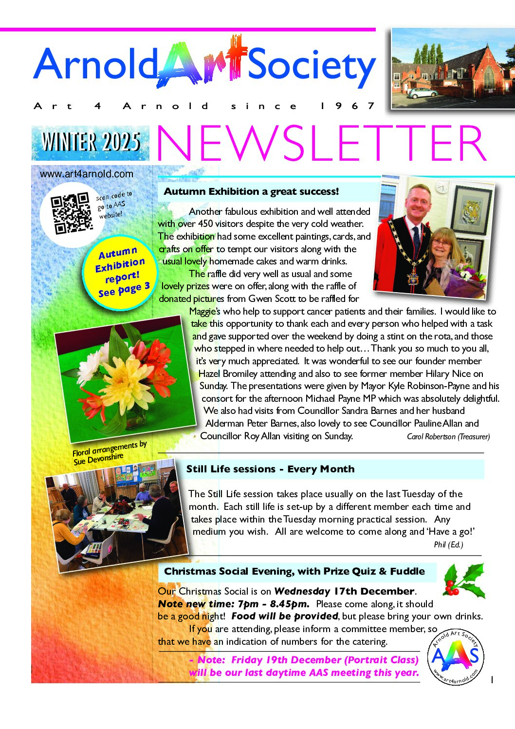 Arnold Art Society produce regular newsletters, showcasing our artist’s work and twice yearly exhibitions.
